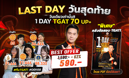 ดูคอร์สทั้งหมด "คลิก"กลุ่มคอร์ส โค้งสุดท้ายสอบ TGAT1 และ A-LEVEL82 (เร่งรัด จบใน 30 ชม.)