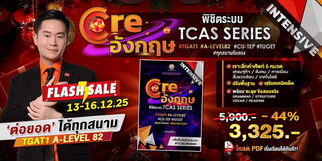 ชุดที่ 1 รวมคลังข้อสอบ Text Comp (TGAT1) 45 ข้อ (เฉลยละเอียด)